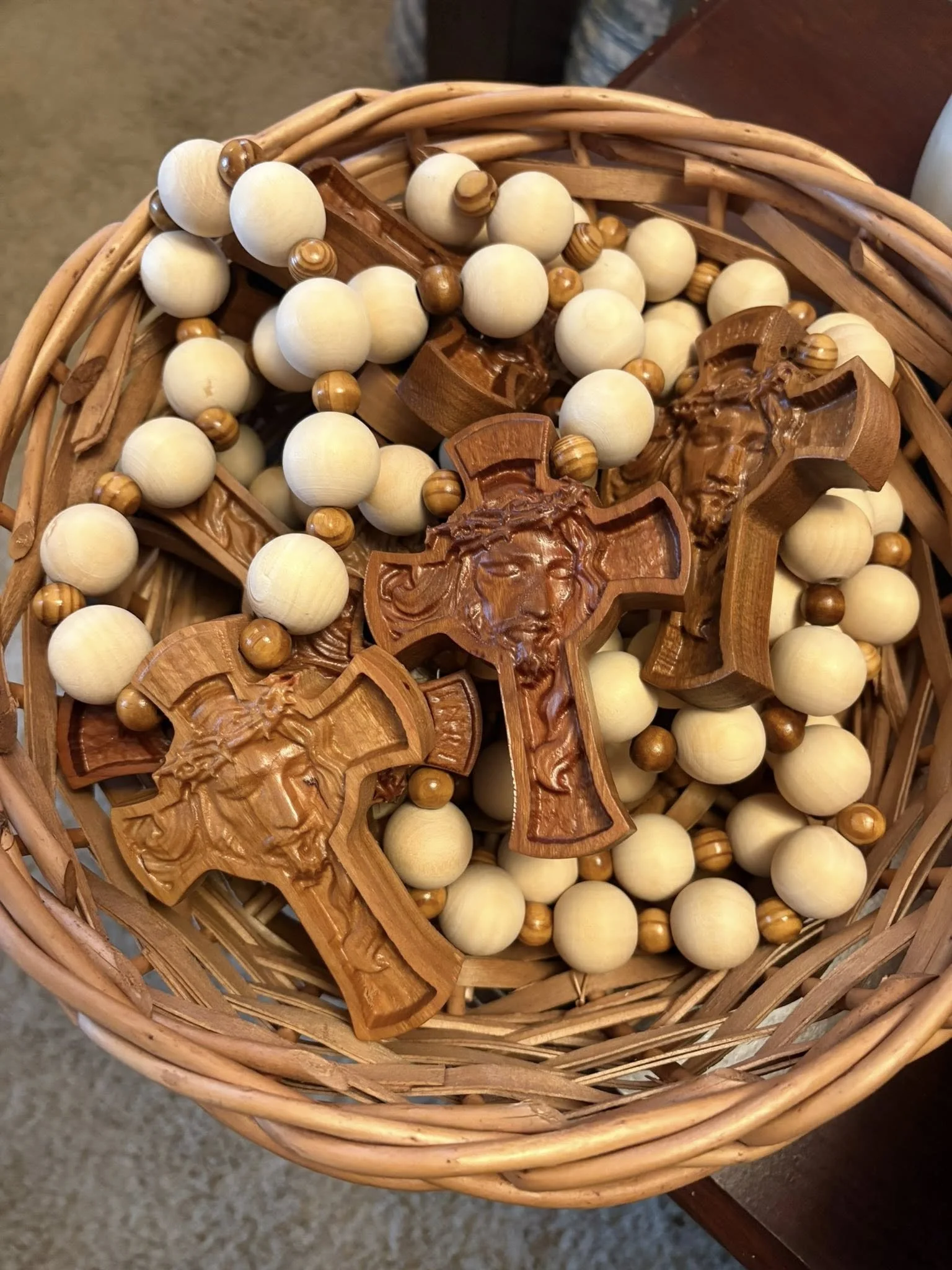 Justin “Oogie” Wagner is the craftsman behind the beautifully carved wooden rosaries and Catholic pieces featured by The Blooming Ginger. Coming from generations of skilled woodworkers, his passion for the craft began early and continues today with deep devotion.